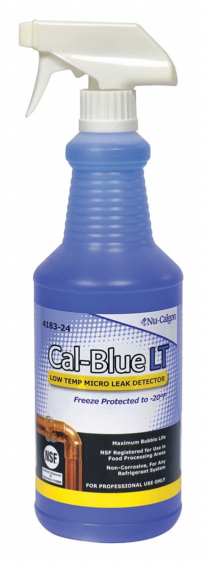 Gas leak detector, non corrosive, oxygen safe, 1 quart, color blue, detects gaseous leaks in refrigerant and other pressurized systems, high viscosity, includes spray bottle.