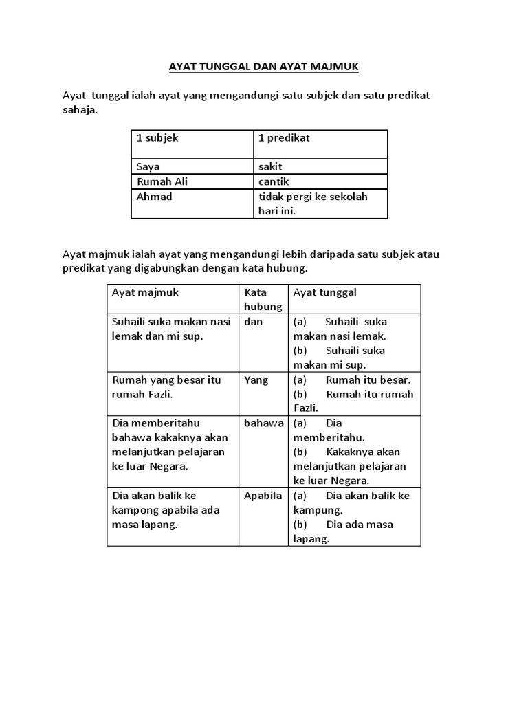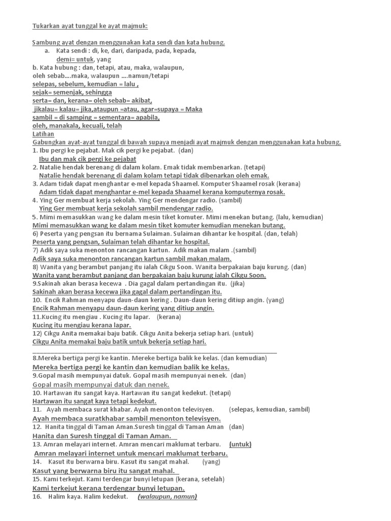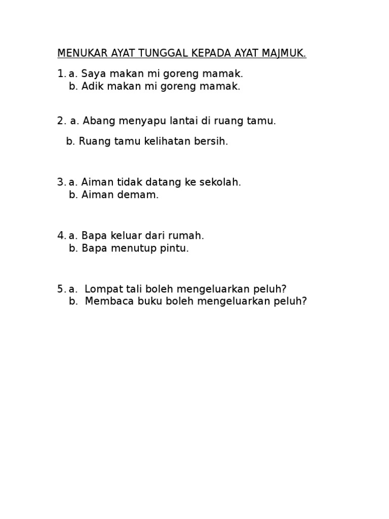 Ayat Tunggal Kepada Ayat Majmuk / Ayat tunggal ayat majmuk mp3 & mp4.. Tukarkan ayat tunggal kepada ayat majmuk. Cerakinkan ayat majmuk tersebut kepada tiga ayat tunggal tanpa mengubah maksud asalnya. Cerakinkan setiap ayat majmuk di bawah kepada dua ayat tunggal tanpa mengubah maksud asalnya. Bunga tunggal, bunga majemuk, penyusutan, & anuitas. Kalimat majemuk adalah kalimat yang memiliki dua atau lebih struktur kalimat.