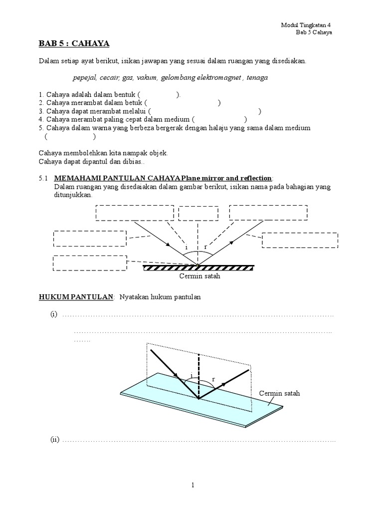 5.3 memahami pantualan dalam penuh critical angle and total internal reflection: Create html5 flipbook from pdf to view on iphone, ipad and android devices. Pembahagian gelombang kepada gelombang progresif dan gelombang statik 2. Modul tingkatan 4 bab 5 cahaya. Nota bab 5 form 5.