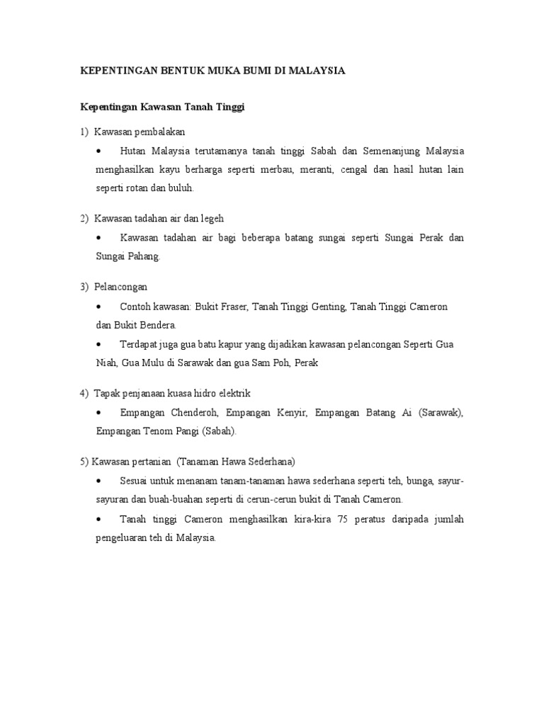 Kepentingan kawasan tanah tinggi di malaysia. Hal ini juga bisa kita lihat dari warna permukaan bumi, yang mana terdiri dari. Sebenarnya, pembahasan tentang bentuk muka bumi ini, sedikit sudah penulis singgung pada artikel interpretasi peta tentang pola dan bentuk muka bumi (materi ips terpadu kelas ix). Pendidikan khas (ppki) tahun 4 age: Tenaga edogen tenaga endogen adalah tenaga bentuk lipatan kulit bumi yang cenderung simetris, karena mendapat tekanan yang sama dari dua arah.