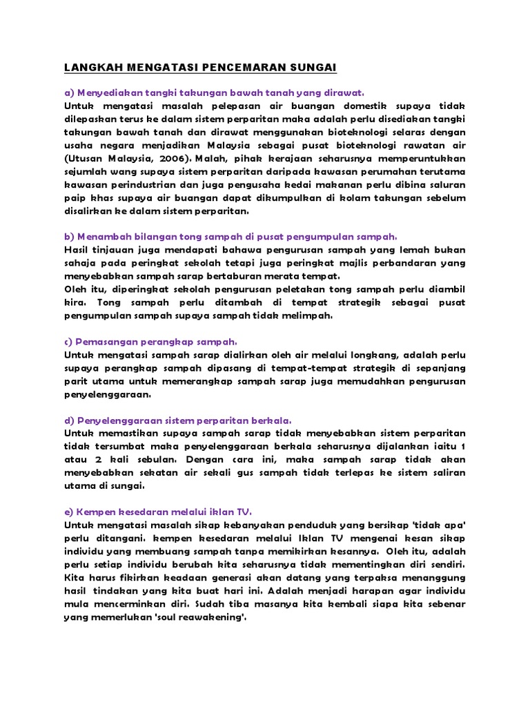 Jika sebuah pernikahan tak bisa lagi dipertahankan, maka jalan terakhir adalah dengan bercerai. Oleh itu,semua pihak termasuk pihak individu ataupun pihak kerajaan,kita semua perlu berusaha mengatasi masalah ini bersama dan seterunya mencapai wawasan 2020. Pembuangan sampah anorganik secara sembarangan di lahan terbuka dapat mencemari tanah dan menyebabkan kerusakan serius pada lingkungan untuk mengurangi jumlah sampah anorganik di rumah, ada beberapa cara yang bisa anda lakukan. Ada langkah struktural yang perlu dilakukan. Kurangnya kesadaran masyarakat mengenai pembuangan sampah sendiri juga menjadi penyebab menumpuknya sampah.