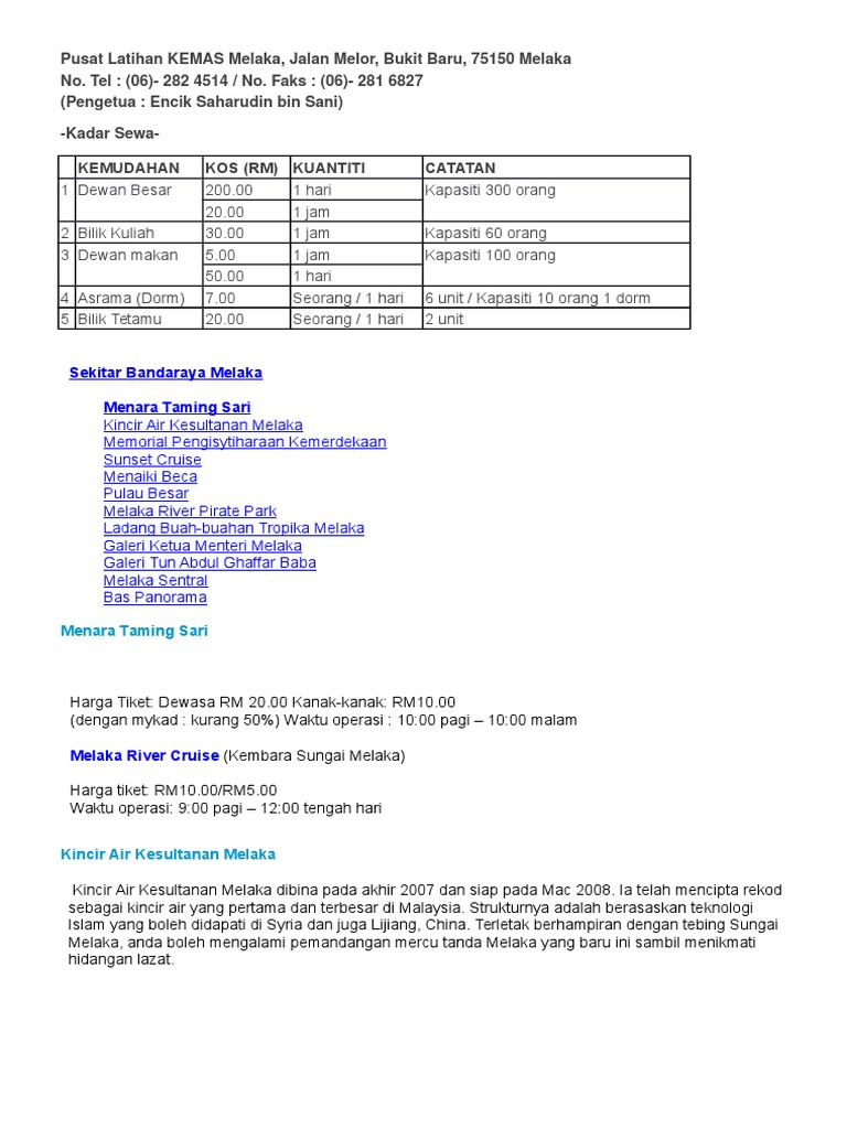 Pusat Latihan Kemas Melaka - Soal latihan penilain akhir tahun (pat) ushul fikih kelas xi agama ma semester genap reviewed by nur amin official on.. Kursus yang diadakan di pusat latihan kemas kampung tun razak di sini melibatkan enam bidang utama iaitu masakan, jahitan, dandanan diri, pendidikan kesejahteraan keluarga, seni tangan dan pusat latihan kemas kampung tun razak menempatkan lebih 20 pelatih dan tiga tenaga pengajar. Pusat latihan kemas melaka, jalan melor, bukit baru, 75150 melaka. Pusat latihan kemas kepala batas, pulau pinang. No 9, jalan kf 1, kota fesyen mitc, 75450 ayer keroh, melaka. Pusat latihan kemas melaka, bukit baru, melaka, malaysia.